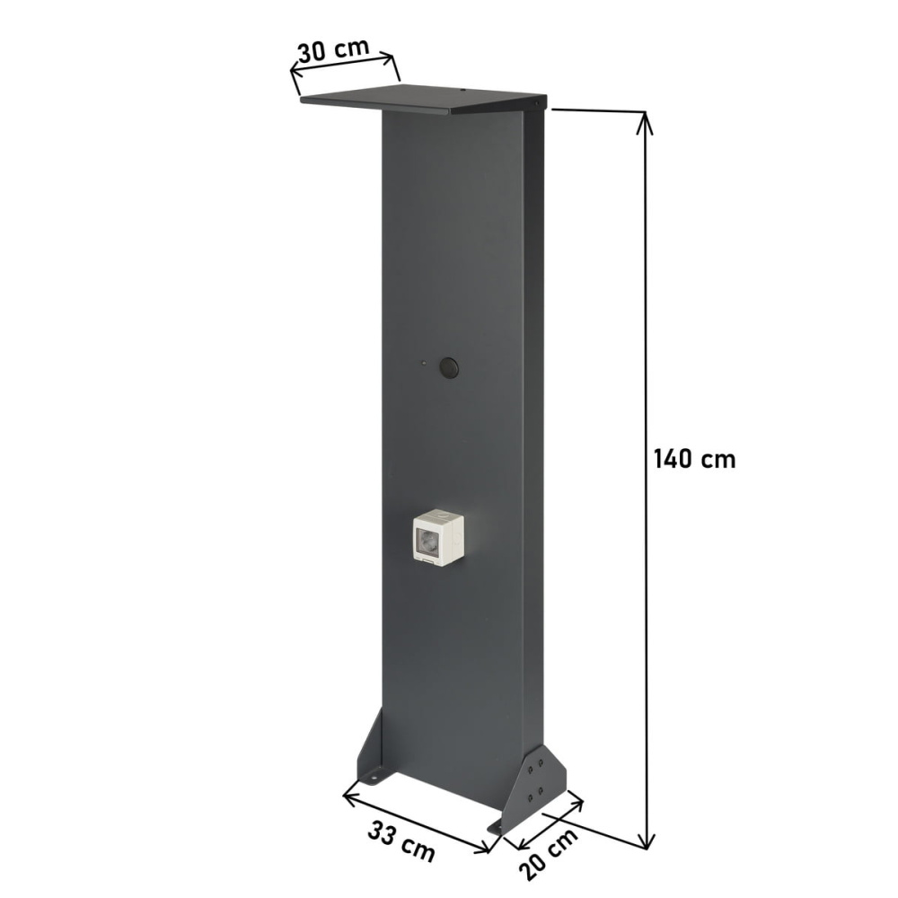 • Kvalitetna izdelava: Stebricek za polnilno postajo je narejen iz aluminija in prašno barvan (RAL7016) kar zagotavlja obstojnost in dolgo življenjsko dobo. Pravilno zasnovana konstrukcija zagotavlja visoko togost, kljub vitkemu videzu.